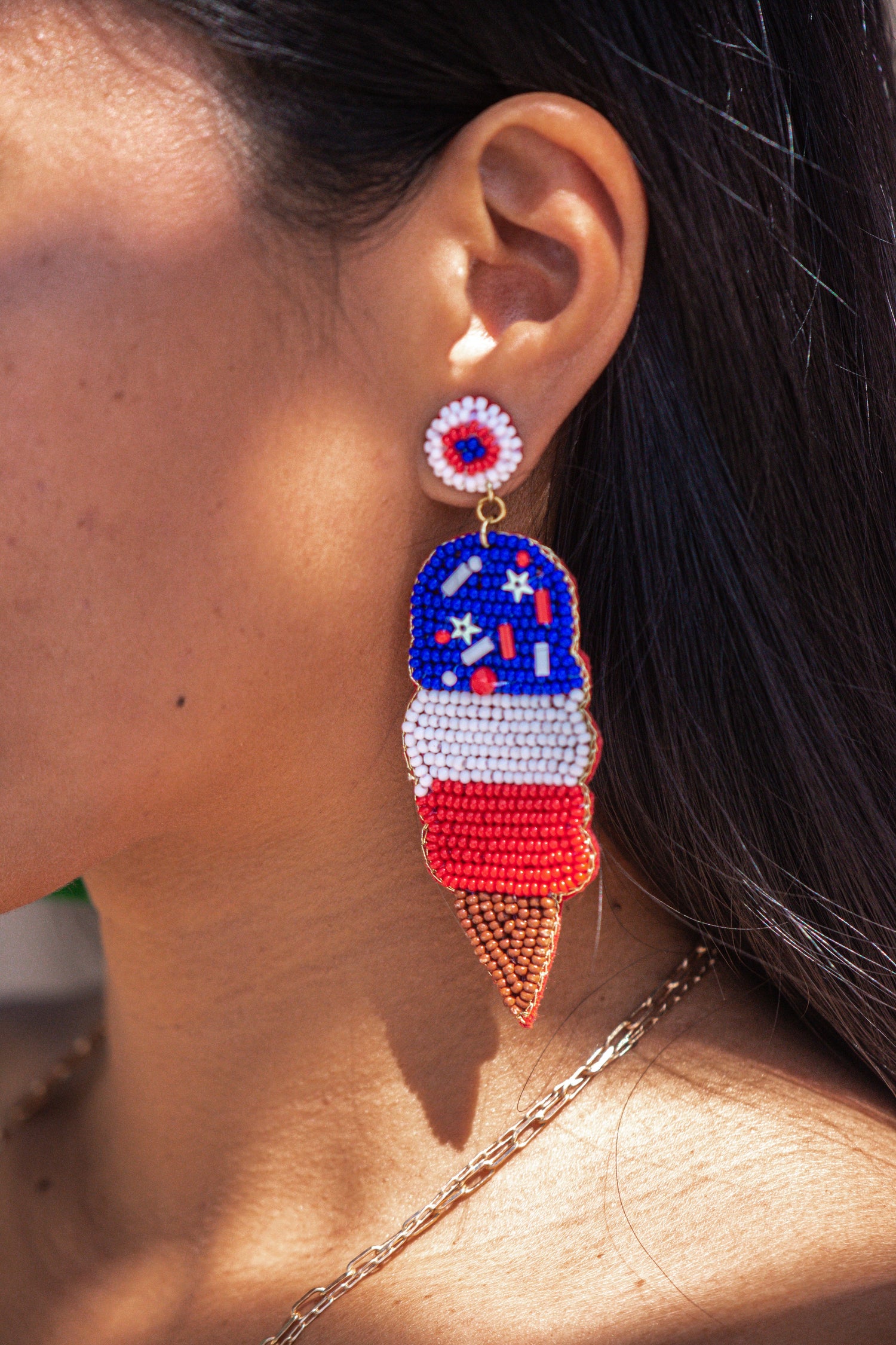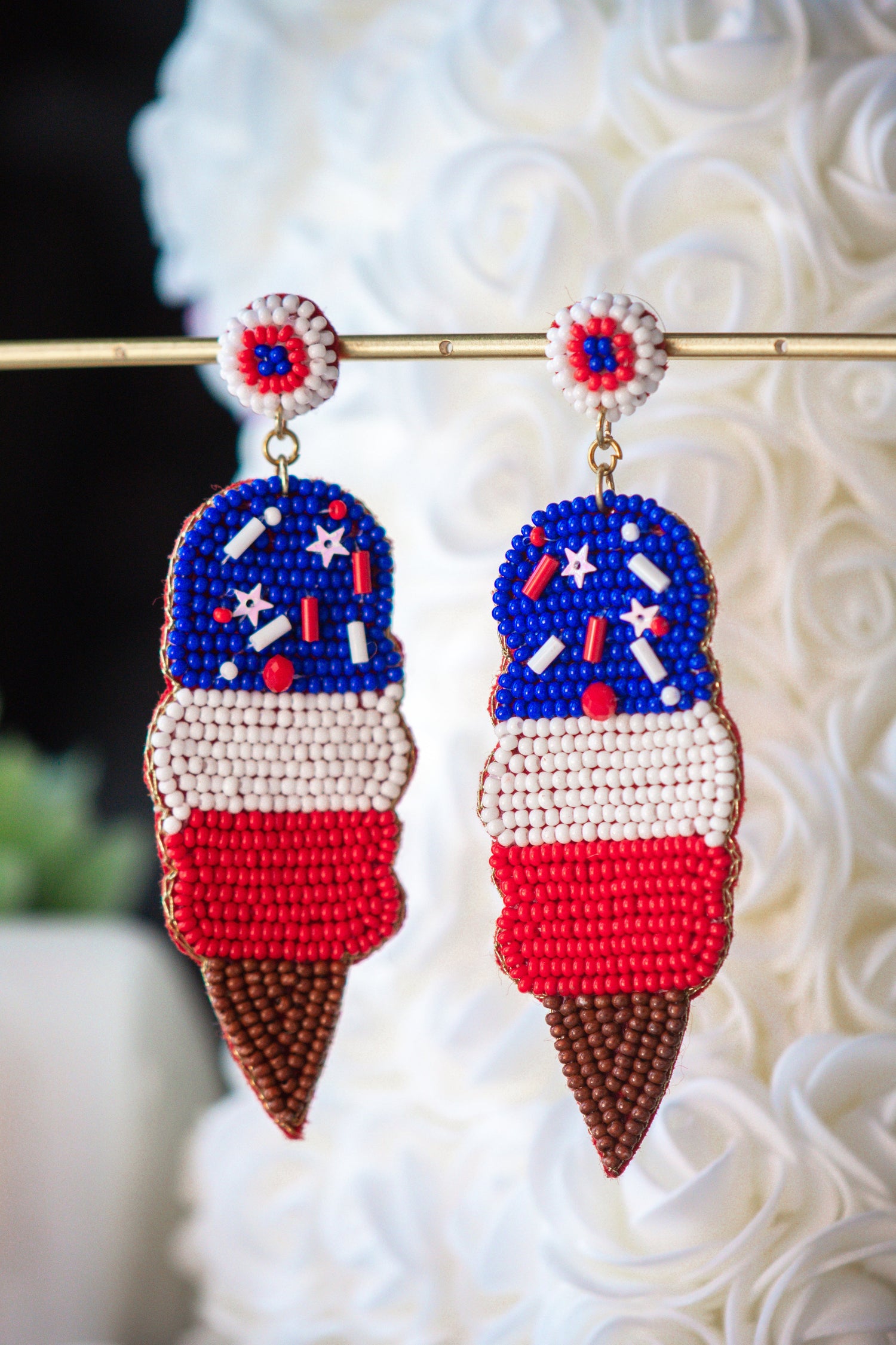American Ice Cream Seed Bead Post Earrings Felt Back