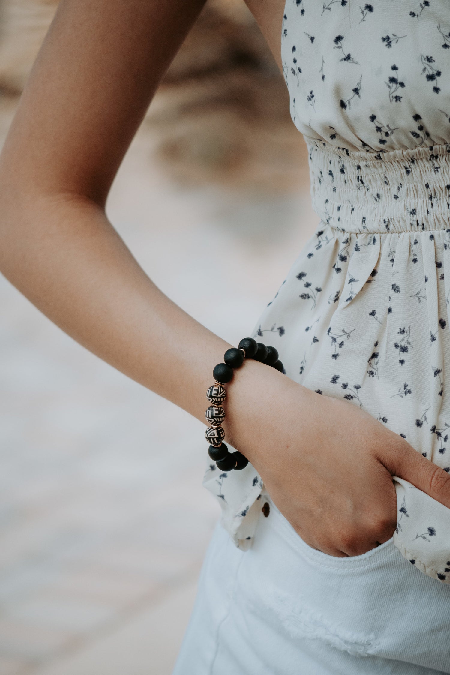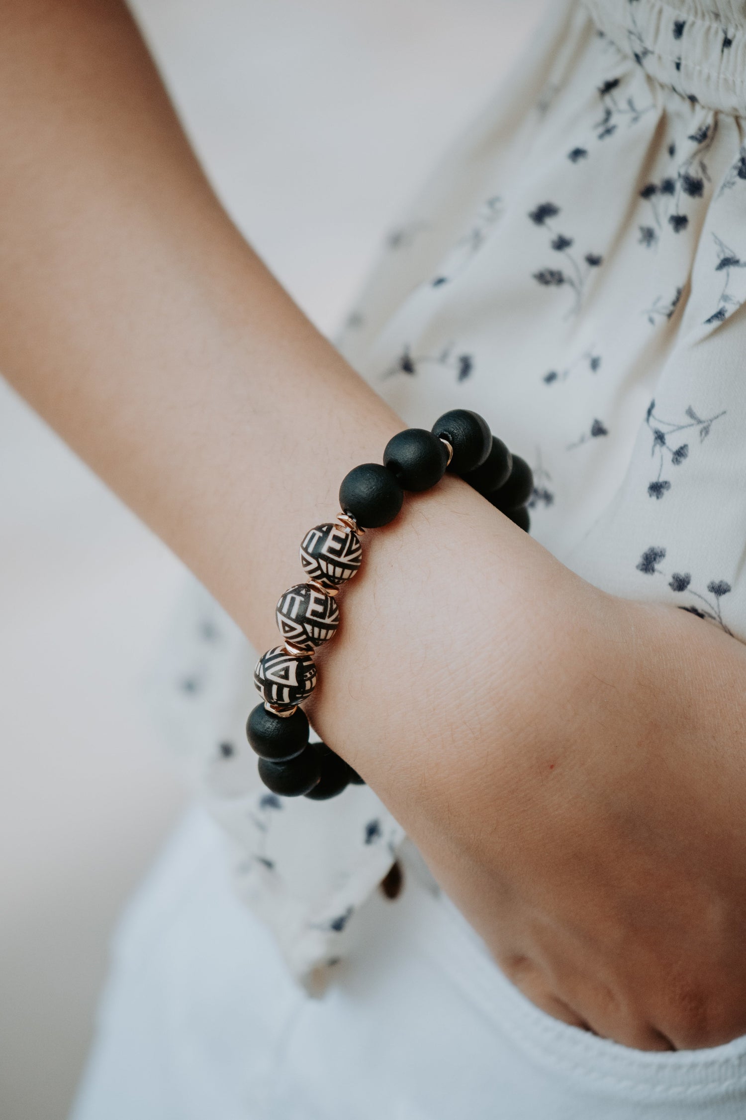 Blaze Wooden Aztec Elastic Bracelet - Black