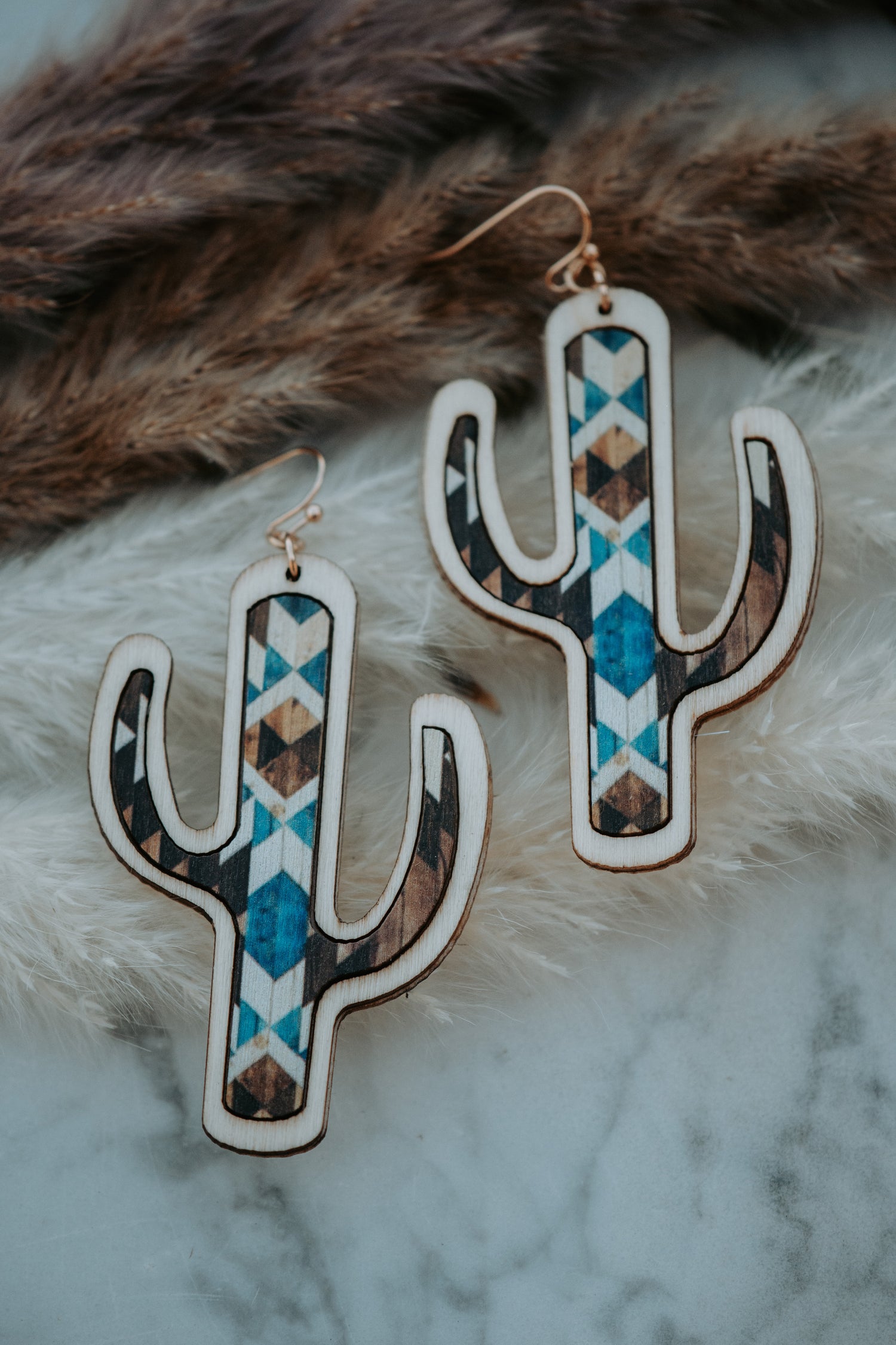 Cactus Wooden Blue Multi Drop Earrings