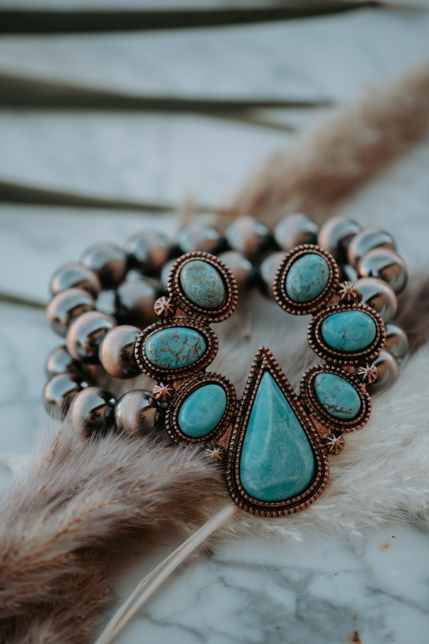 Copper Turquoise Squash Stretch Navajo Beads Bracelet