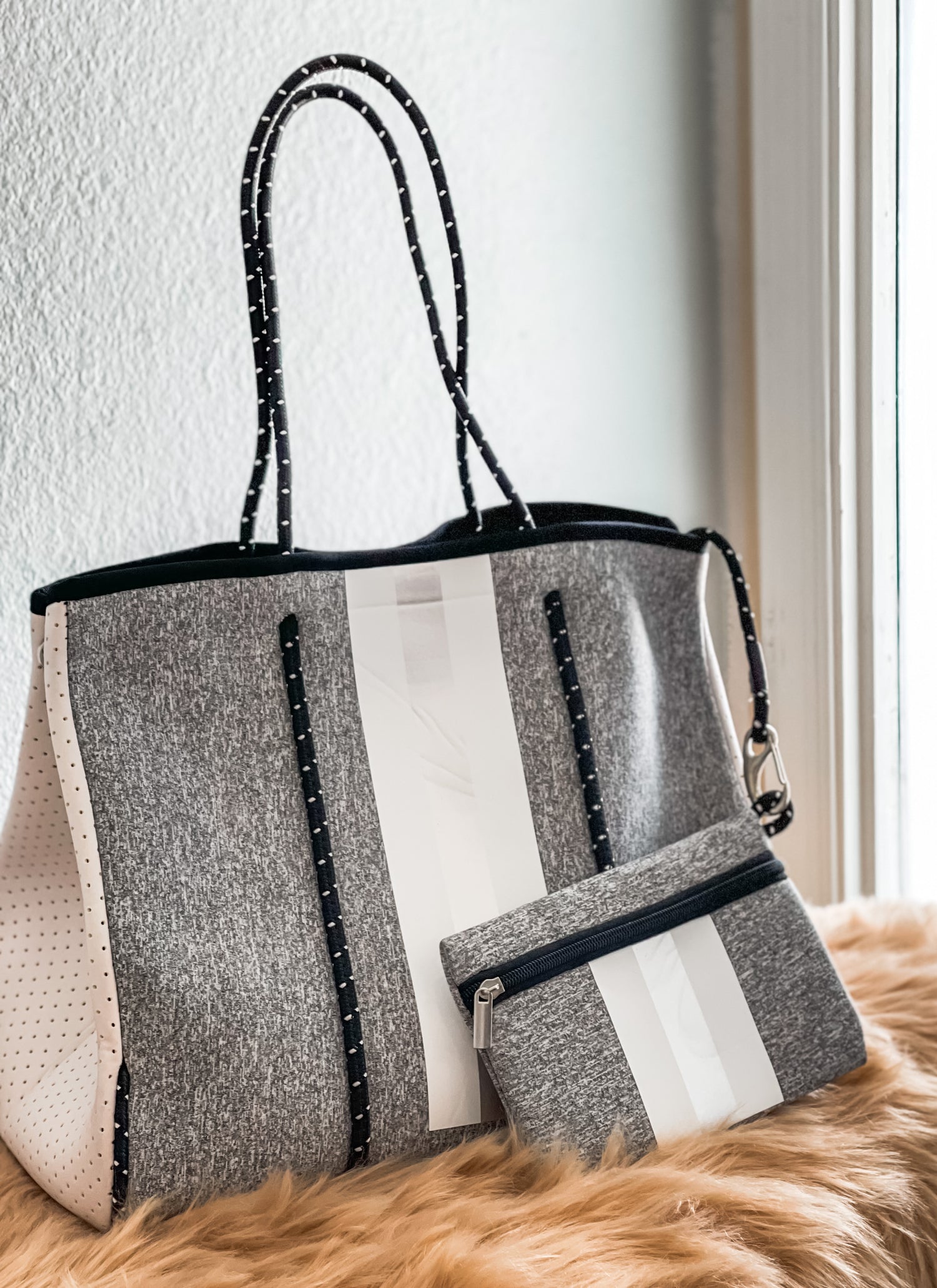 Cynthia - Solid Gray Print with Stripes Neoprene Tote