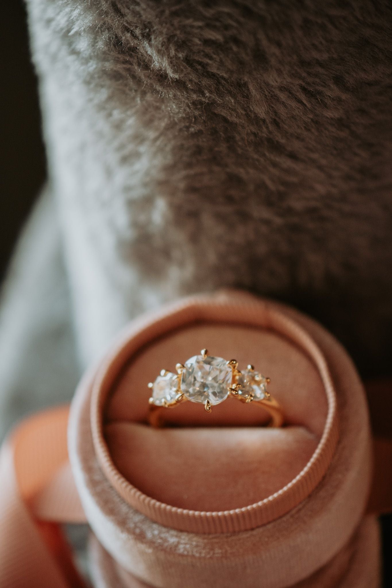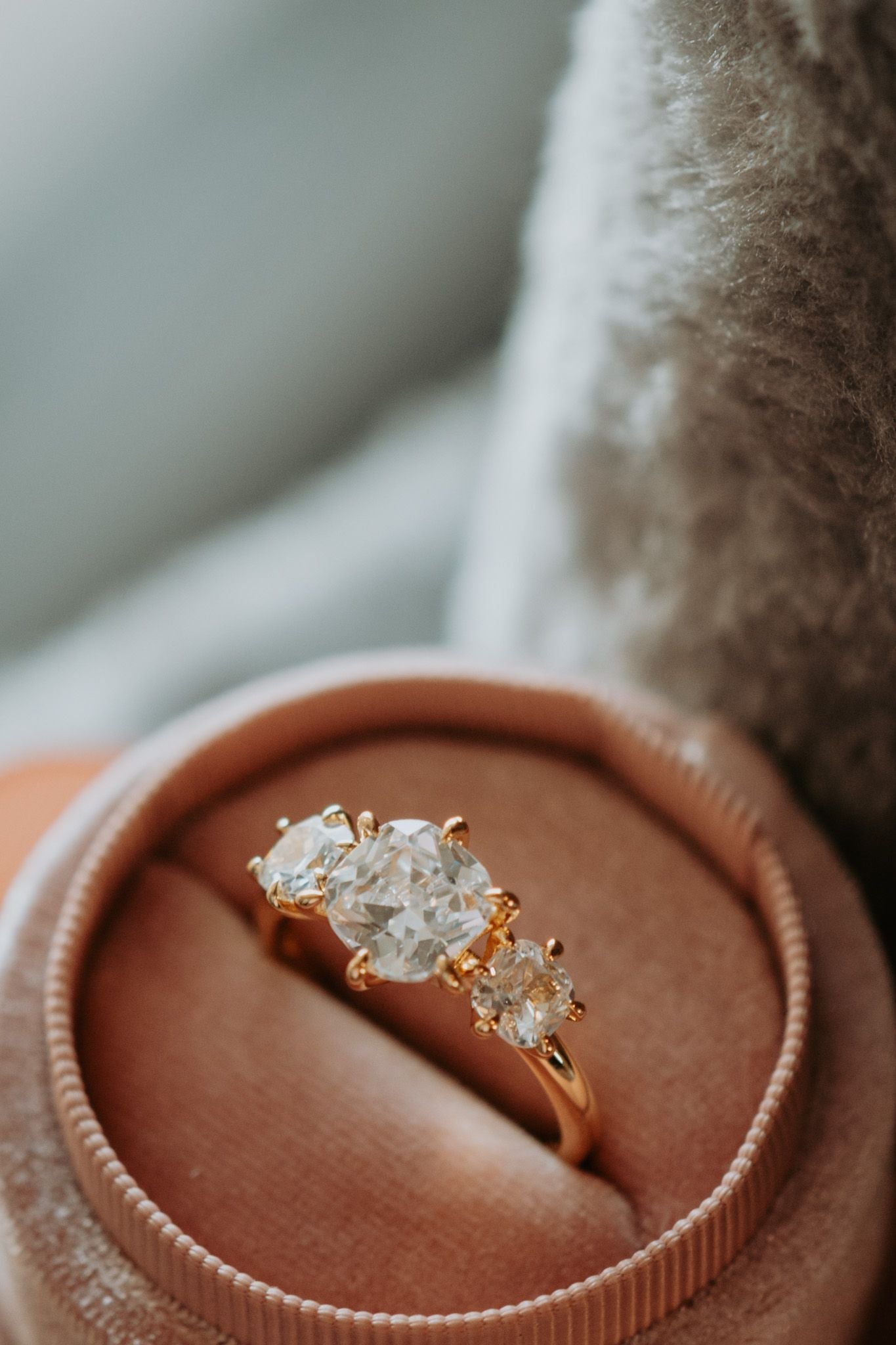Deeply In Love 3-Stone Cushion Cut Gold Ring