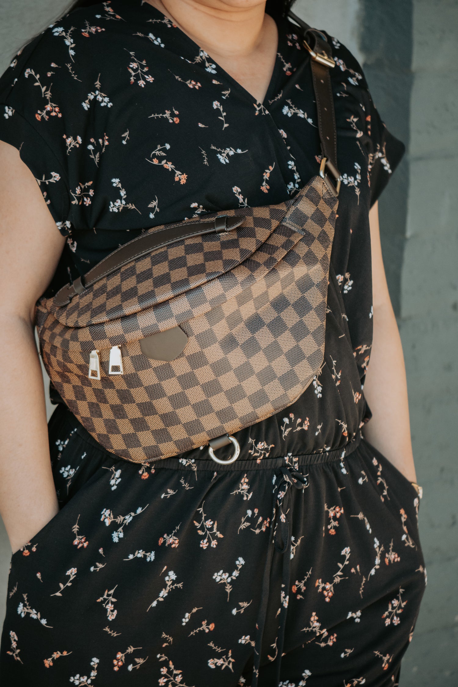 Deluxe Brown Checkered Bum Bag