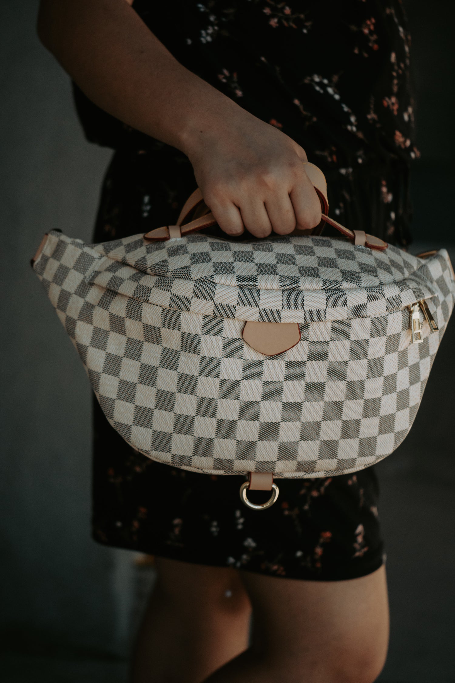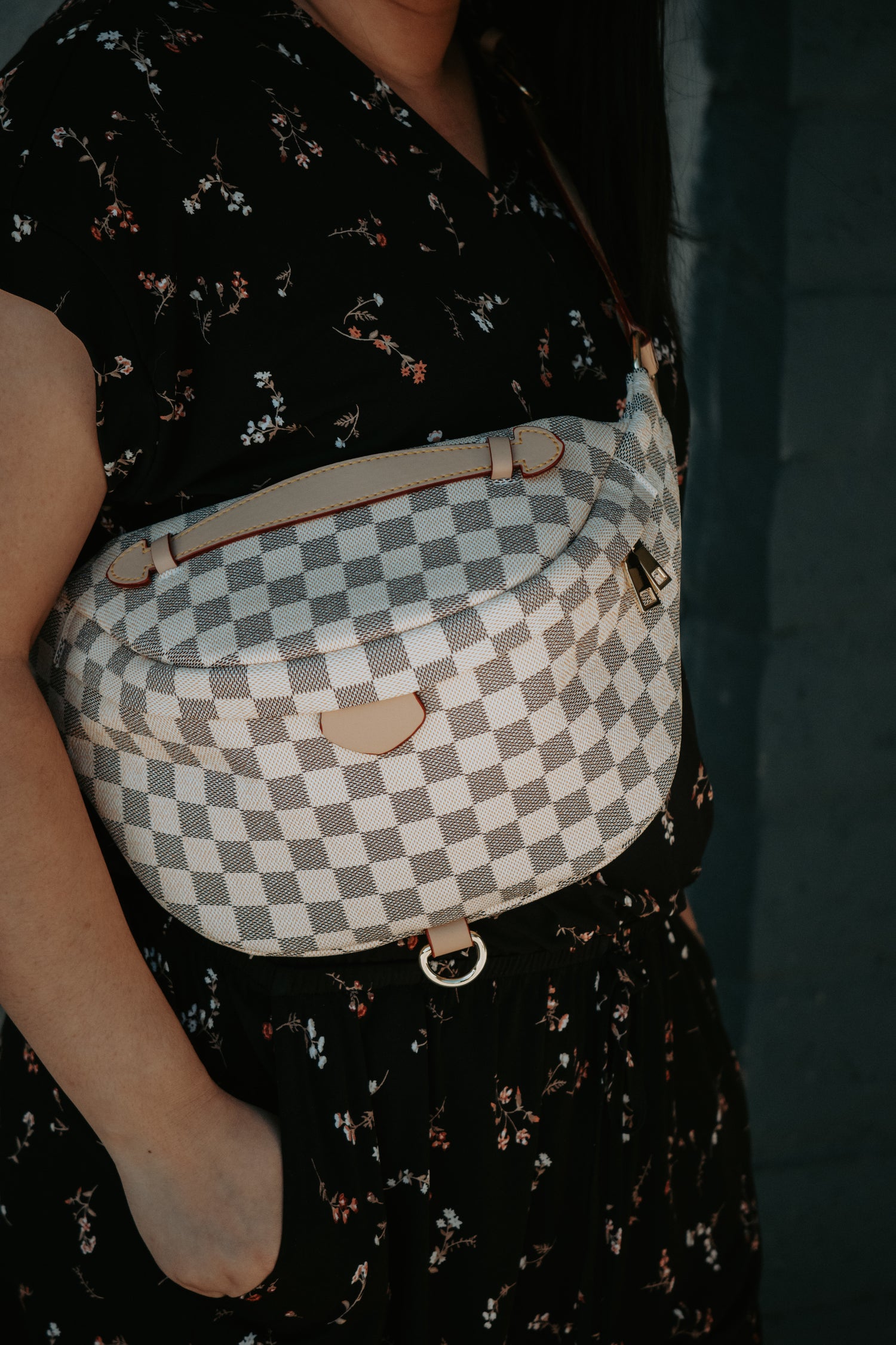 Deluxe Cream Checkered Bum Bag