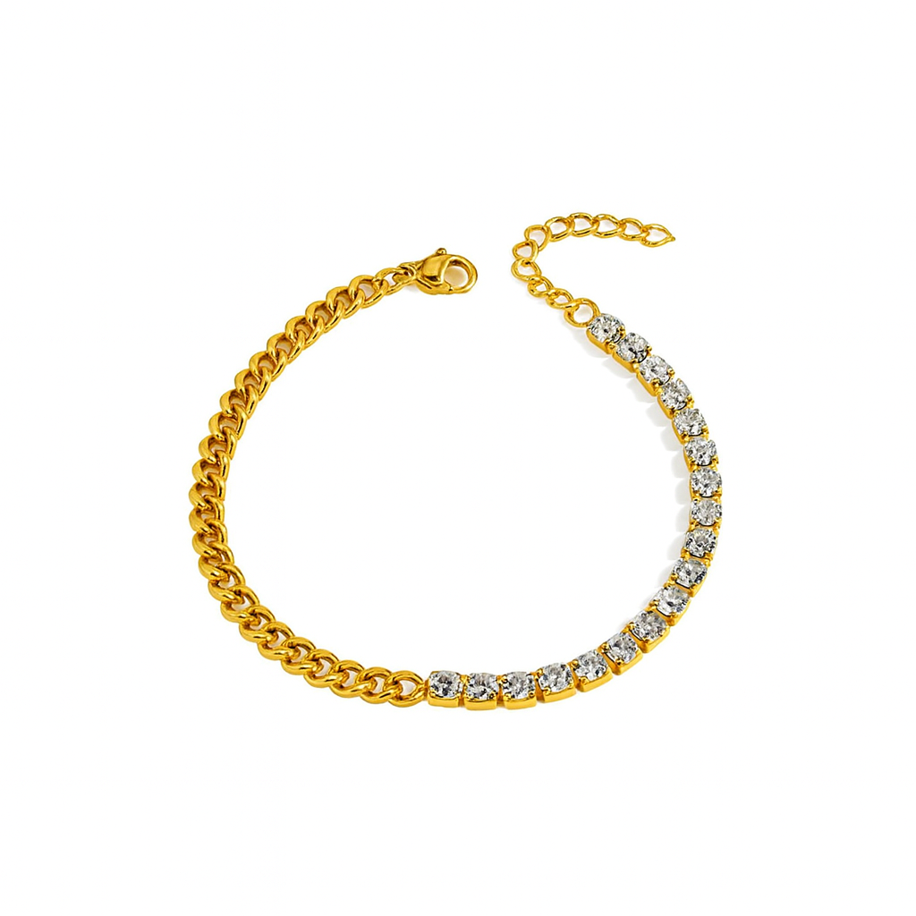 Add a sparkling twist to your wrist with the Elara Diamond Tennis Bracelet in a trendy Cuban chain design. Crafted to resist tarnish, it keeps its shine no matter how many adventures you take it on. Perfect for adding a dash of fun and glam to your everyday look or dressing up for a night out!