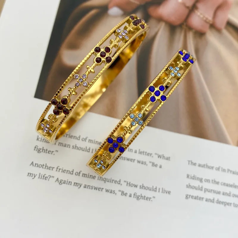 Elaris Multi-Color Stone Gold Bangle - Stainless Steel Non-Tarnish Jewelry