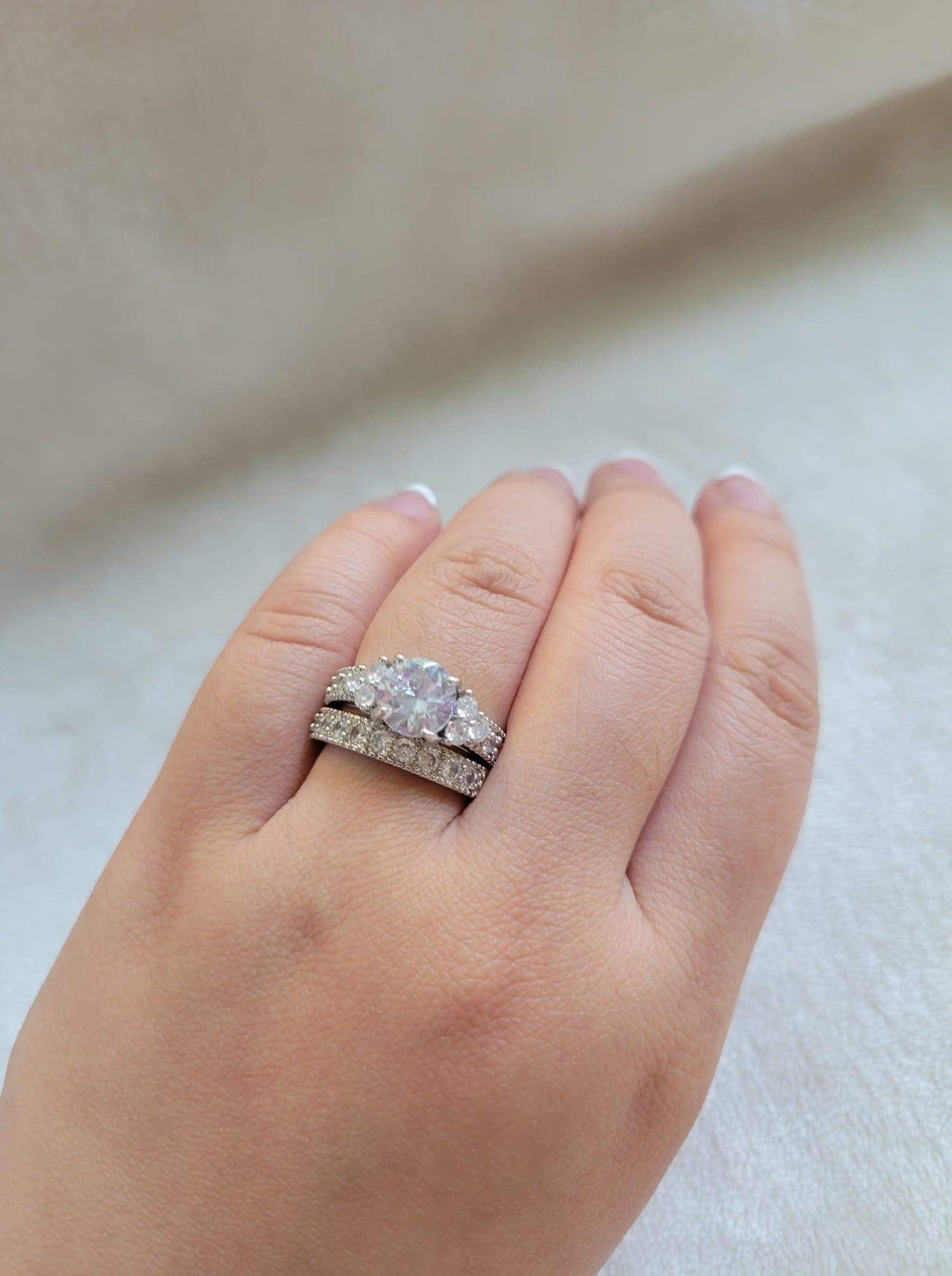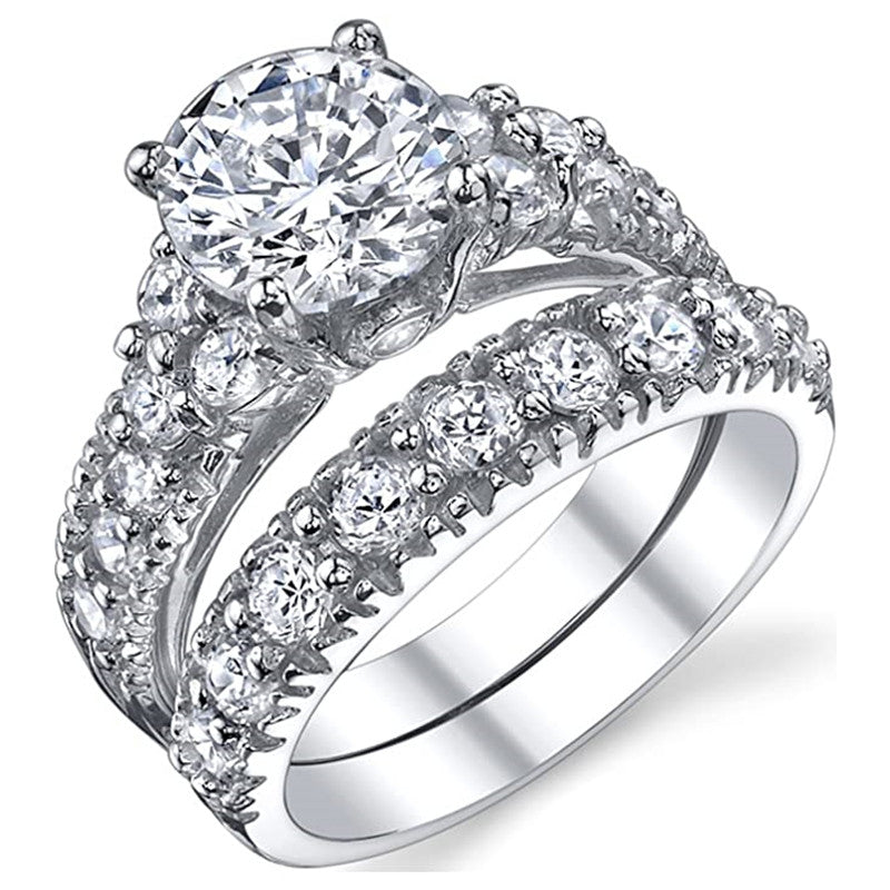 Forever and Always is a beautifully designed wedding set that features a gorgeous engagement ring with 8mm round cut center. The wedding band is a stunning 8mm wide both set in 925 sterling silver.