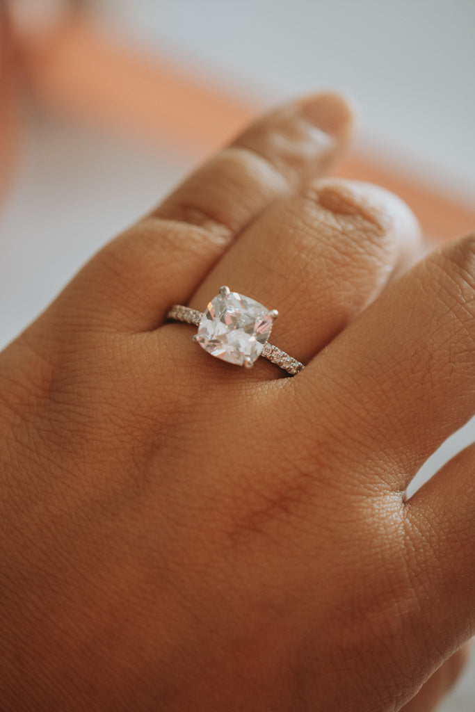 Gaia Cushion Cut Sterling Silver Ring Rhodium Plating