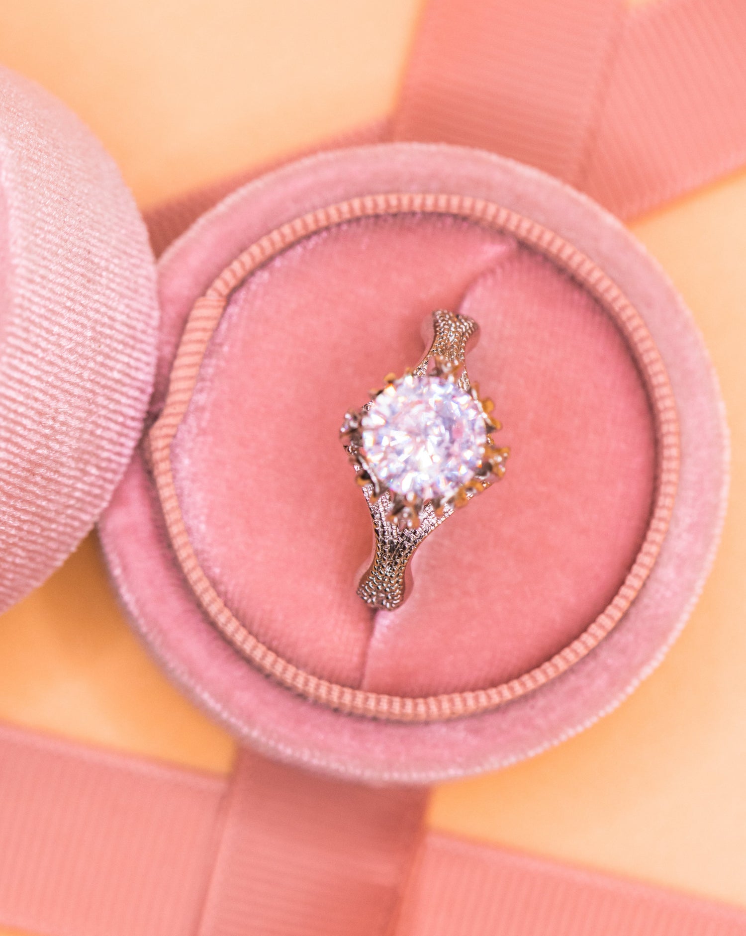 This elegant ring is one of our favorites because of its endless styling options; dressed up or down, it's the ideal statement shape. The Genesis ring is a subtle classic because of its flaming round-cut diamond set in a cathedral setting with a blossom design. When you wear it, your every move will definitely catch the eye of many.