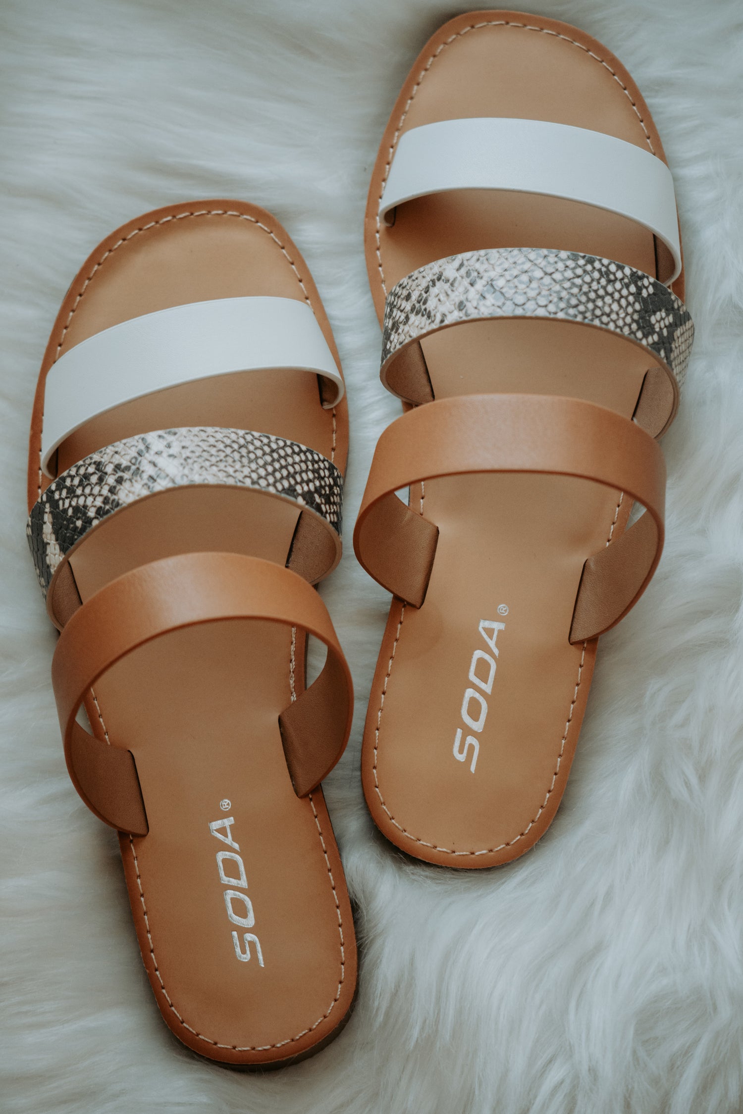 Jamie Triple Strap Sandal in Snake Skin