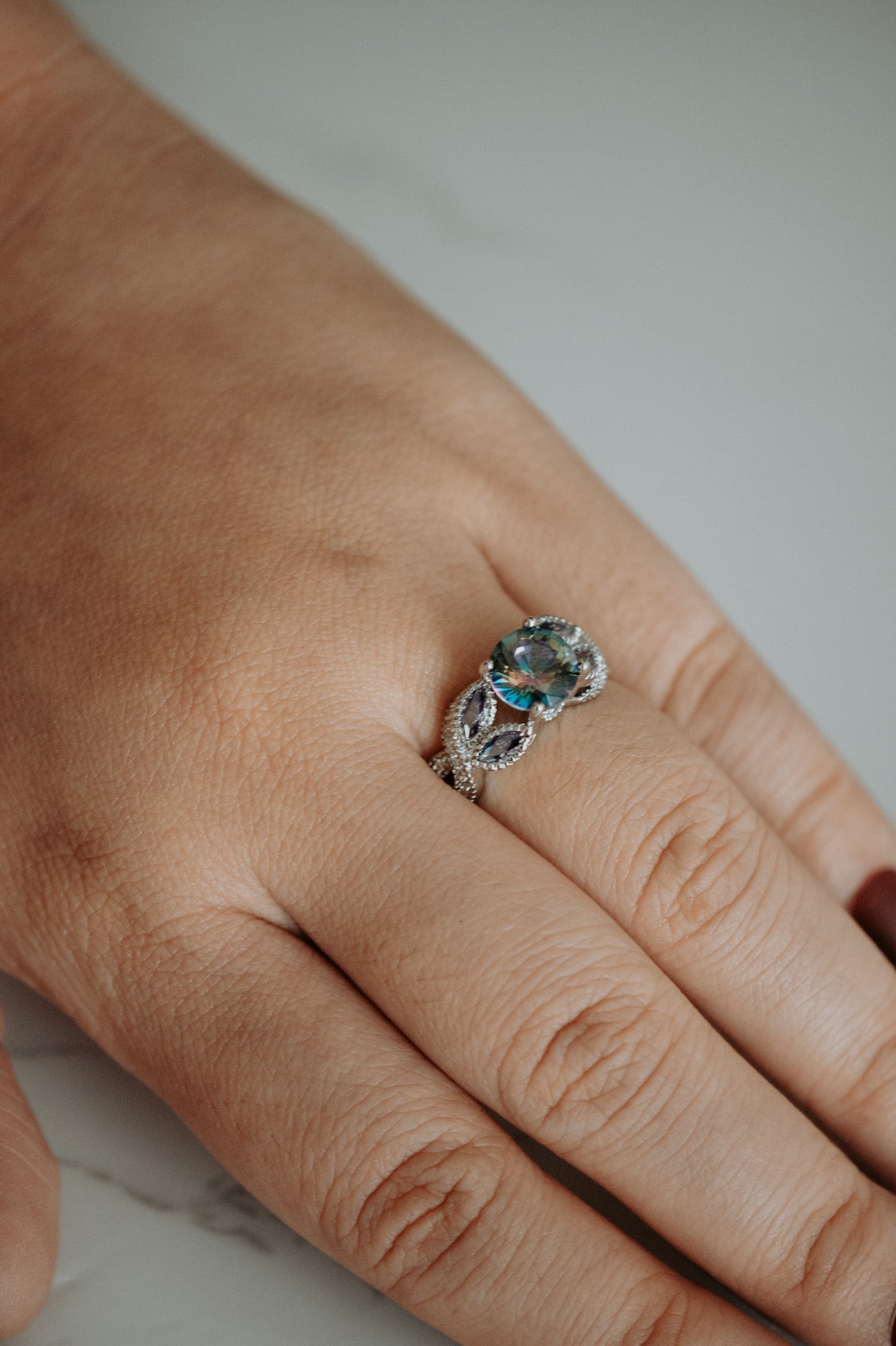 Julia Princess Cut Rainbow Gem Sterling Silver Ring