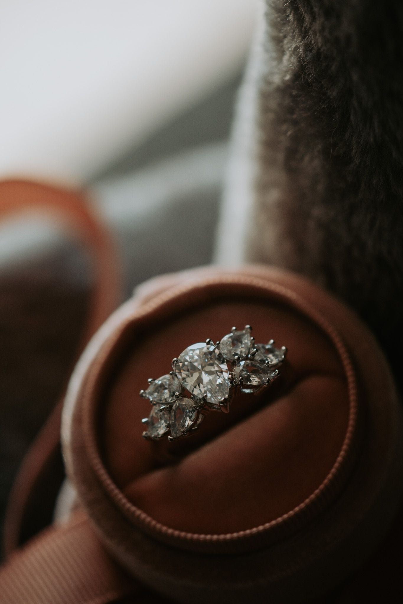 Love Me 7-Stone Pear Cut Sterling Silver Ring