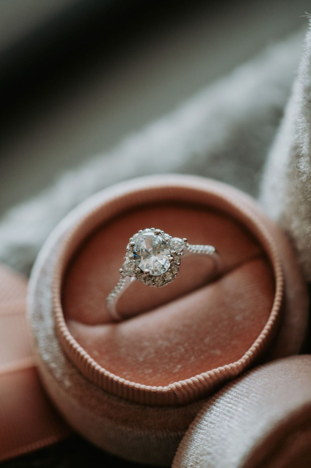 - Oval Cut Main Stone w/ 2 Round Cut Side Stones