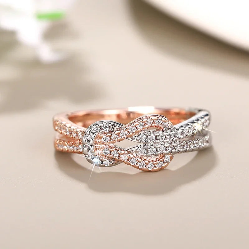 Lume Twist Infinity Dual-Tone Silver Rose Gold Ring