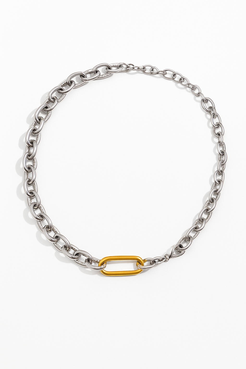 The Lunara Dual Toned Chain Necklace combines elegant gold and silver finishes in a single piece, offering versatile style that complements any outfit. Crafted for durability, this necklace features a non-tarnish design, ensuring long-lasting shine and minimal maintenance. Its dual tones provide a sophisticated look that pairs effortlessly with both gold and silver accessories, making it a timeless addition to your jewelry collection. Ideal for everyday wear or special occasions, the Lunara necklace delivers both style and resilience with expert craftsmanship.