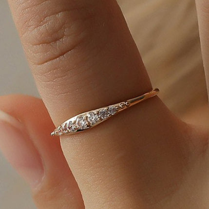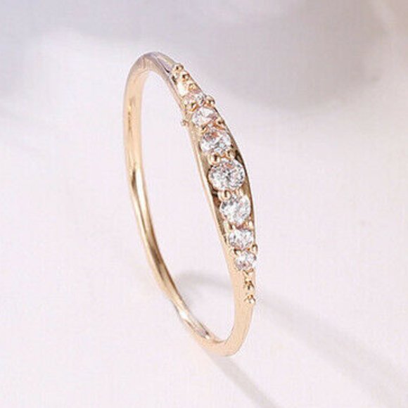 The Mia Ring is a gorgeous addition to your everyday stack, with delicate studs and a sprinkling of stones. This ring has a timeless style that you can wear for years. It is a simple, fine, and lovely band that will not tarnish and is hypoallergenic, so it will not irritate your skin nor leave a green mark. It's composed of brass and plated with 925 sterling gold. The Mia Ring will effortlessly boost your jewelry collection. Our stones are conflict-free since they are manufactured with AAA zirconia stones of the highest grade.