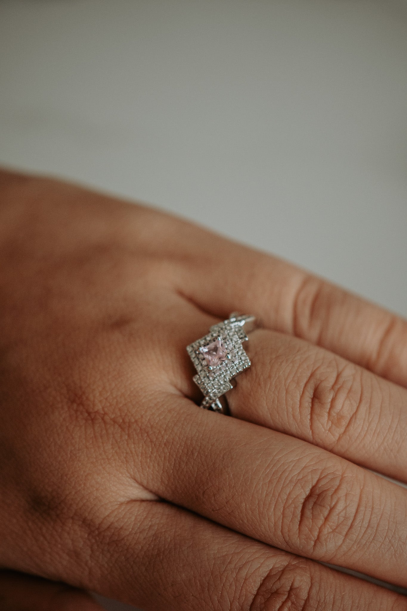 Rhian Pink Gemstone Princess Cut Sterling Silver Ring