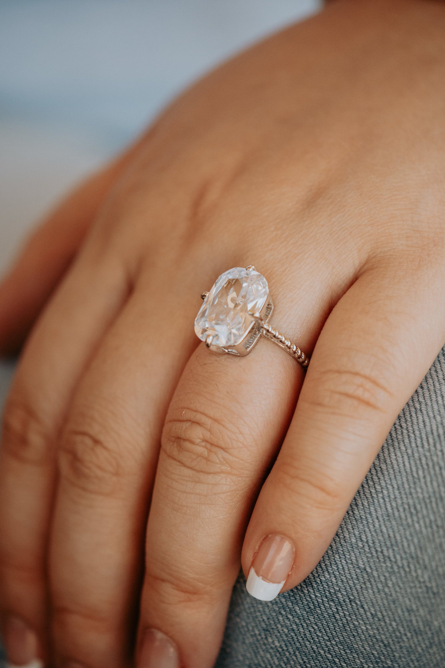 Stella Radiant Cut 4-Prong Silver Ring