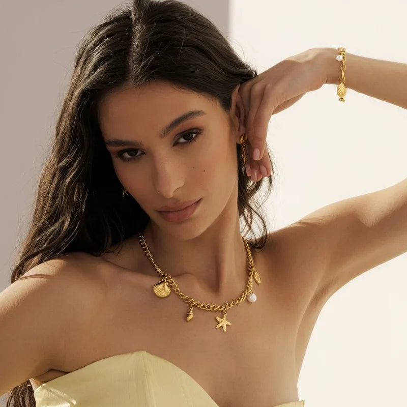Sunlit Shore Charmed Gold Necklace Sea Lover Inspired