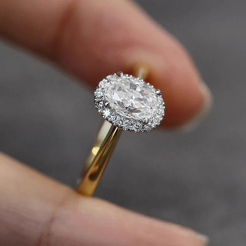 Tali Dual Tone Oval Halo Cubic Zirconia Ring