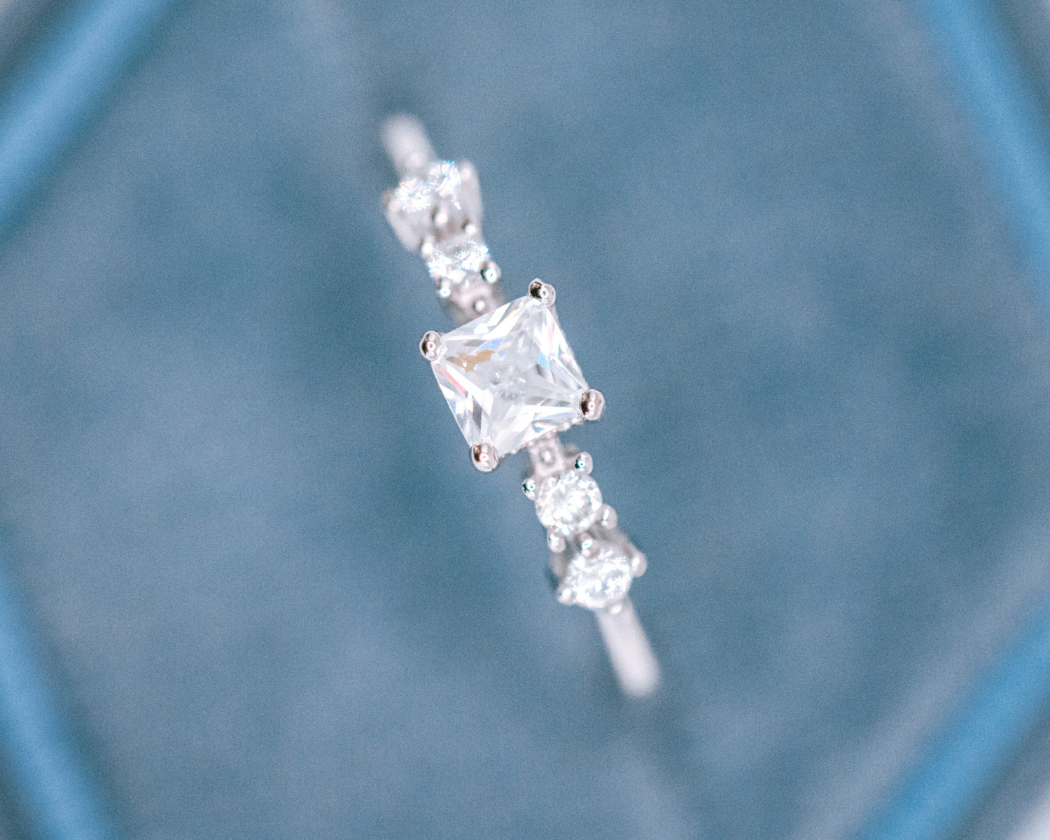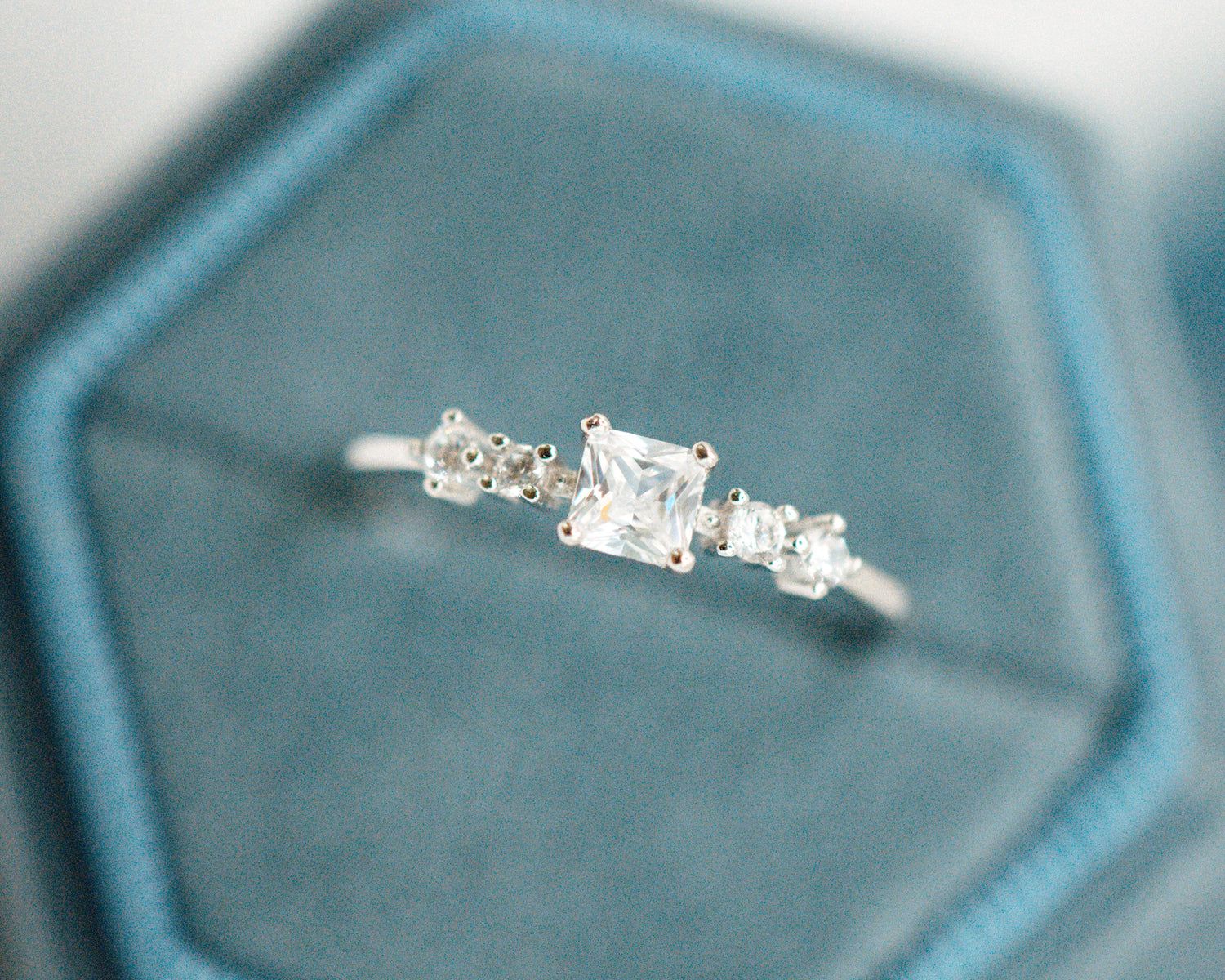 The simplicity and class of this ring! A princess cut for a princess! Perfect as a stand alone ring or pair it with our stackable bands in this collection, this ring is IT!