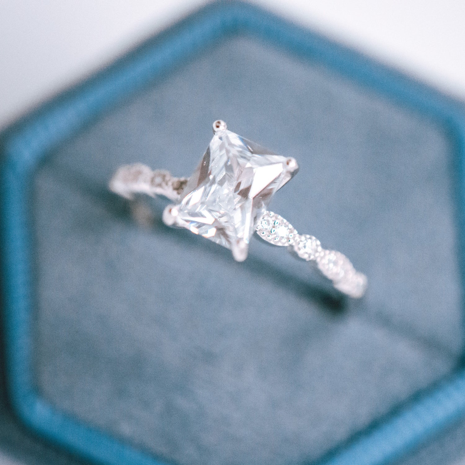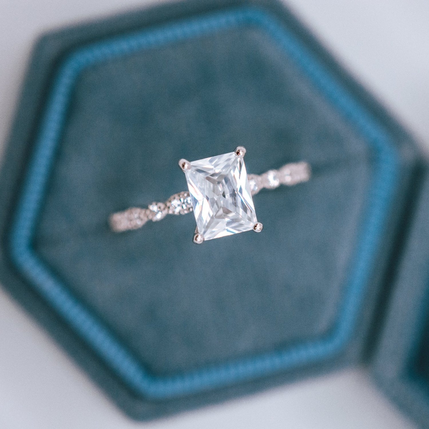 Our Emilia Ring is a slightly bigger baguette ring than the Charlotte. She will surely draw attention!