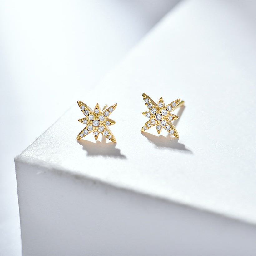 Twinkling Star S925 Post Zircon Stud Earrings in Gold