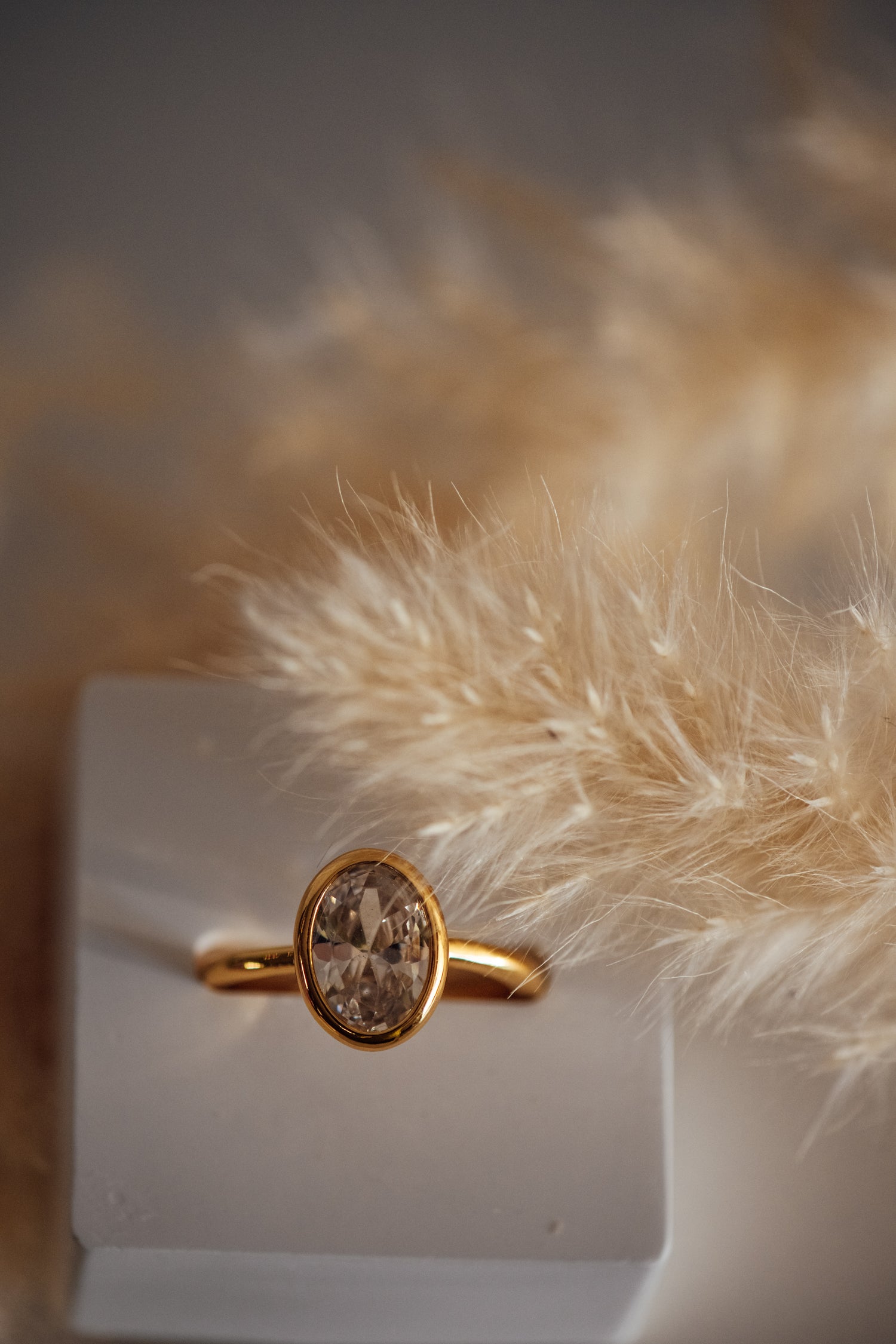 Zorya Oval Stone Dainty Ring - Stainless Steel Hypoallergenic